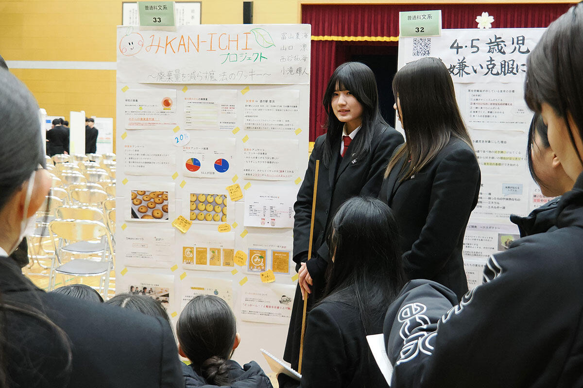 発表のタイトルは「みKAN-ICHIプロジェクト 〜廃棄量を減らす魔法のクッキー〜」。