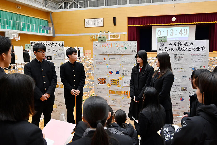 その発表会は「SSH研究開発成果報告会」というもので、詳しくはこちらを参照ください。要するにみかんクッキーの取り組みを含めた、観音寺第一高校で行われた様々な研究結果を発表する場とのこと。その研究には、今回取材したフードロス問題のような社会課題を切り口にしたものもあれば、理系のアカデミックな取り組みなどもある様子。