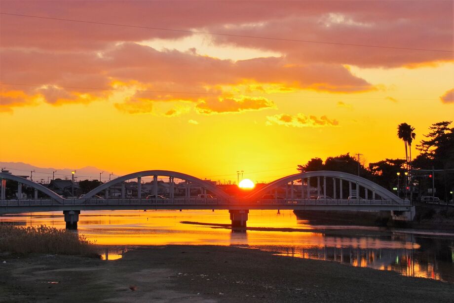 佐久間前相談役が生まれ育った故郷の風景(裁判所と三架橋)