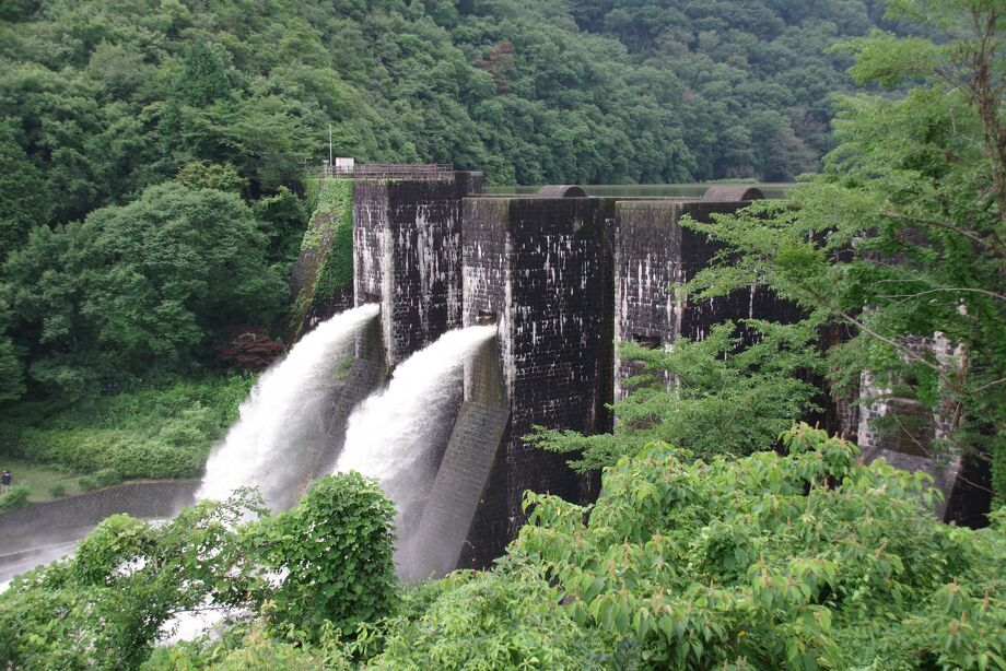 観音寺市にある現存する日本最古の石積式マルチプルアーチダム