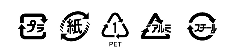 「プラスチック」「紙」「PETボトル」「アルミ缶」「スチール缶」の全部で5種類です。