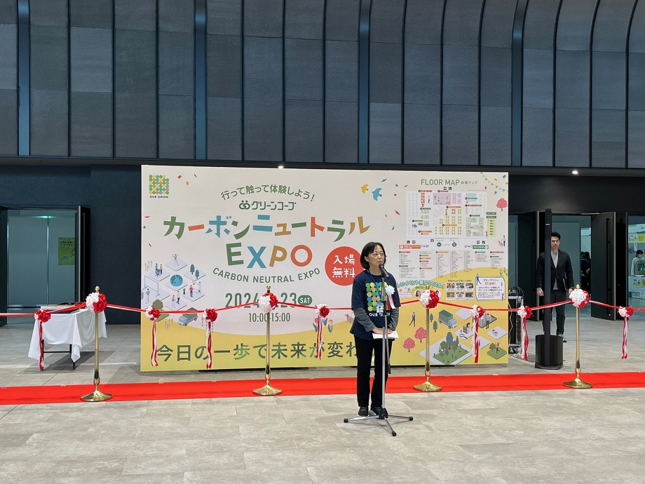 主催者であるグリーンコープ代表理事の日高容子様によると、グリーンコープカーボンニュートラルEXPOは、その副題である「小さなことからはじめてみよう」をテーマとして、私たち一人ひとりができることを考え実践していくことが子どもたちの未来を守る大きな力となる、そのためには子どもから大人まで家族みんなで楽しくカーボンニュートラルを体験できるイベントを開催しよう、という趣旨から開催に至ったそう。