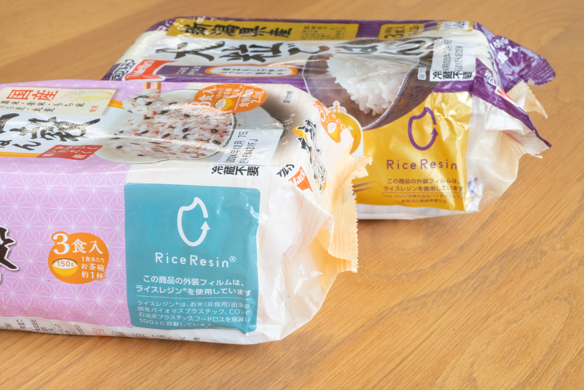加藤さん:ライスフィルムを知ったきっかけとしては、2019年頃に新潟県のバイオマスレジン南魚沼さまが破砕米などの非食用米を使ったバイオマスプラスチックを製造しているという記事を読んだことでした。弊社のパックごはんを作るにあたって、精米の工程でたくさんの破砕米が発生していました。その破砕米を、プラスチックと混ぜることでパックごはんのパッケージやトレーとして再利用できるのなら本当に素晴らしいことだと思いました。