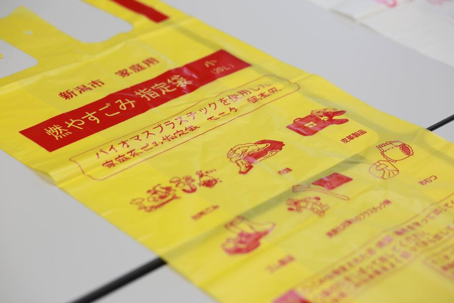 奥田さま:最近は、自治体のゴミ袋としての採用が増えてきていますね。2019年に、南魚沼市がライスレジンを使ったゴミ袋を導入し、2023年には魚沼市や新潟市でも採用していただいています。今年の6月からは関川村でも採用されました。