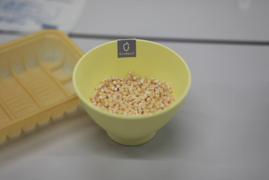 奥田さま:最大で、ポリプロピレンベースだとお米の比率が70%、ポリエチレンベースだとお米の割合が50%くらいですね。用途やコストにより、割合を調整して製品化しているのが現状です。