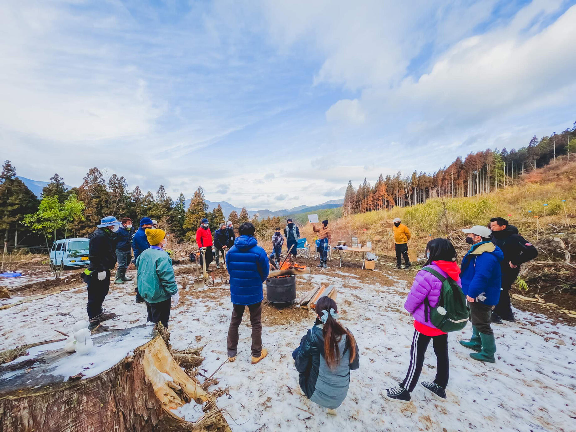 森づくりメンバーの他にも、カフェ店オーナー、バイク店オーナー、山岳博物館、キャンプ場運営会社、写真家など、さまざまな業種から想いに共感するメンバーがプロジェクトに参画している。
