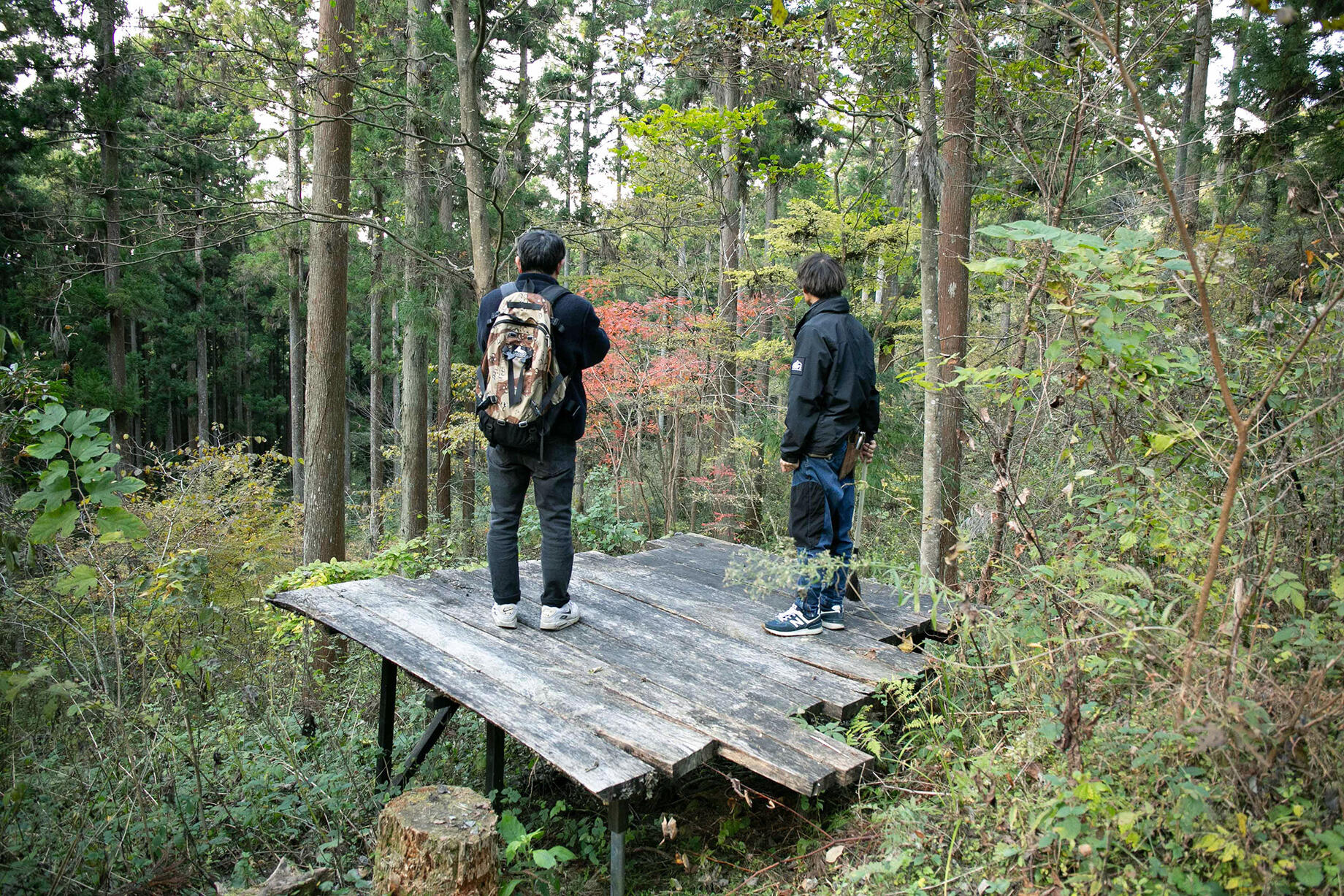 黄金の森プロジェクト [主宰]久万造林株式会社 [参画]四国ガス株式会社、HIFUMI合同会社(森づくりリーダー)、株式会社Beaver(山林施業)、面河山岳博物館(植物相調査)、株式会社LANDSKY・久万珈琲焙煎所(カフェ・イベント企画)、橲(ウッドデッキ制作)、N.CAMP(カフェ)、曽我部洋平(撮影)