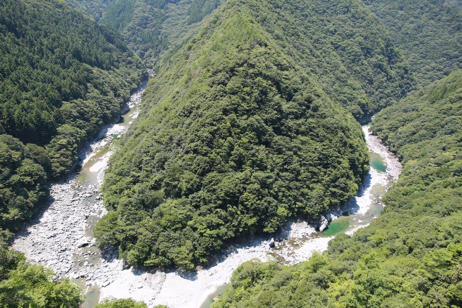 険しい四国山地と、それを貫く雄大な吉野川の流れが織りなす、見ごたえある風景が特徴です。