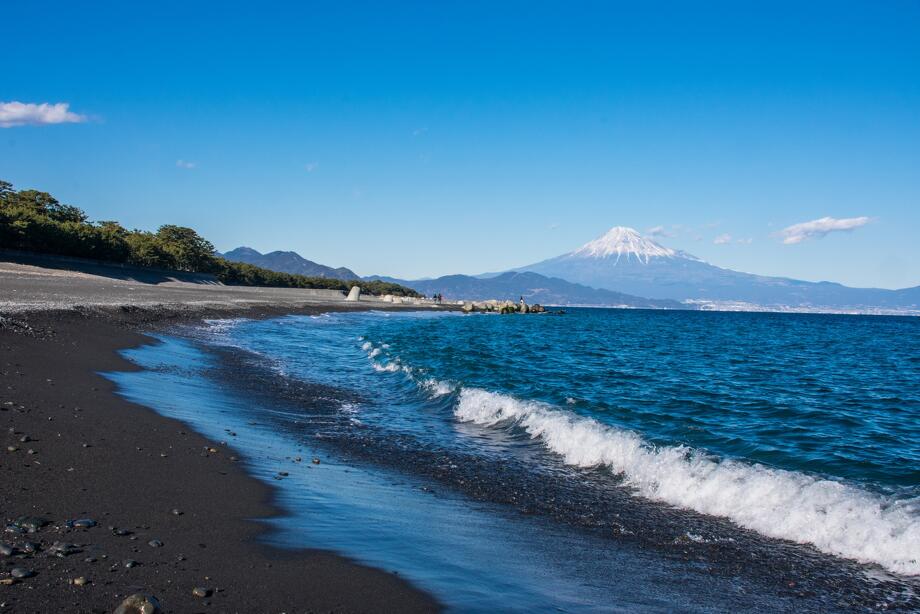 一方、静岡県の三保の松原は、富士山や伊豆半島の火山活動によって生成された玄武岩質の火山灰や溶岩が砕けて堆積しているため、黒っぽい砂浜です。