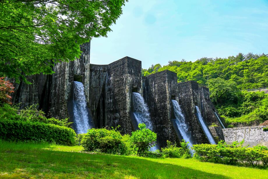 讃岐山脈のあたりは砂岩などの「堆積岩(たいせきがん)」が広がるエリア。 観音寺市の山奥にある「豊稔池ダム」も、近くで採れる砂岩を積み上げて作られました。