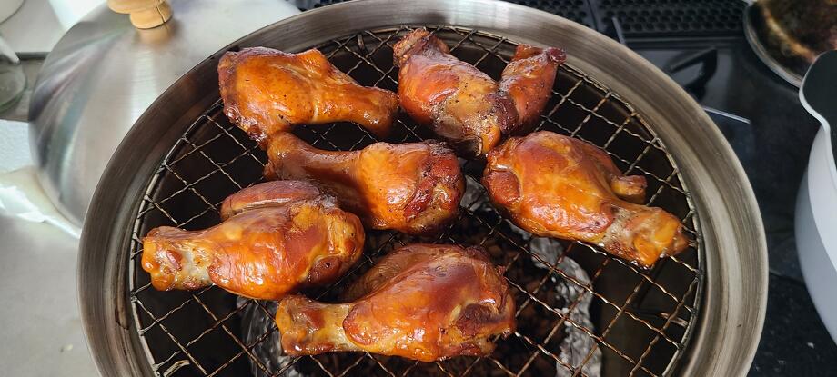 後輩のタクヤさんが趣味の燻製で作った、手作りのスモークチキンだ。