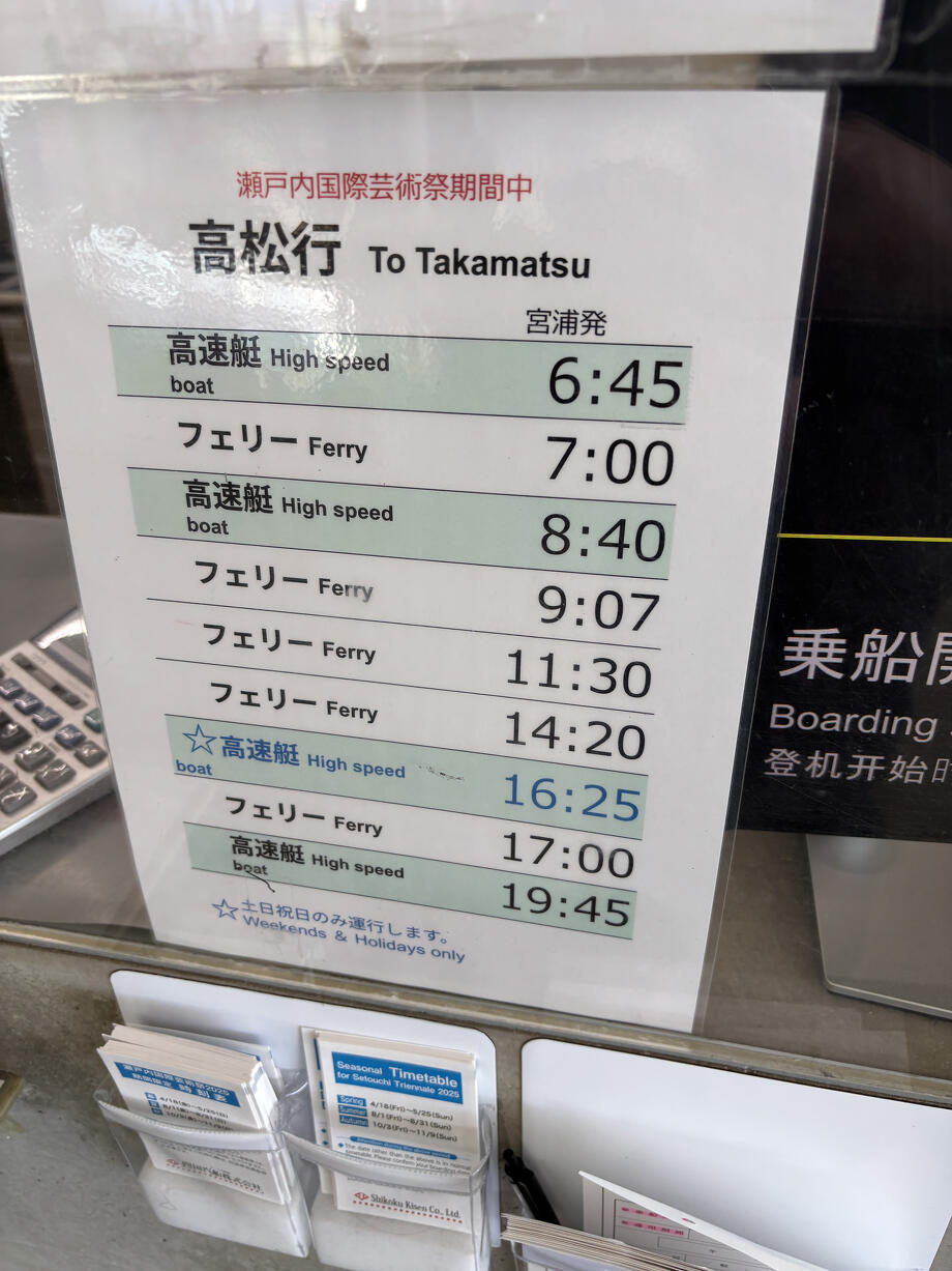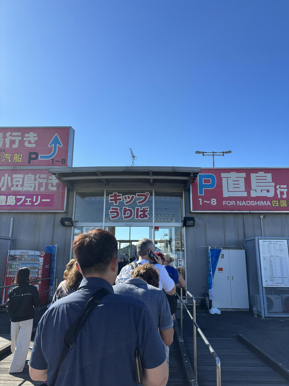 気が付けば早朝の直島行きフェリー乗り場に並んでいました。