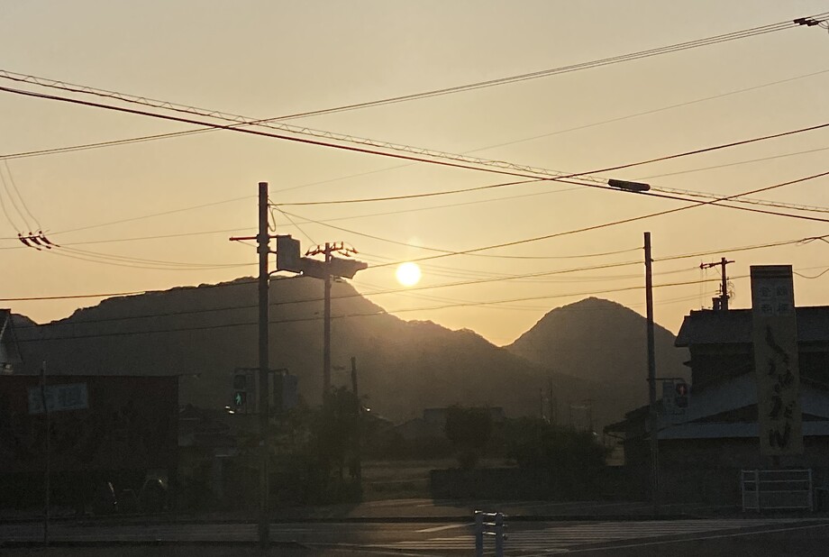 朝日を背に浴びつつ、ライジングサン林は薄暗い車道を静かにスタートしたのです!