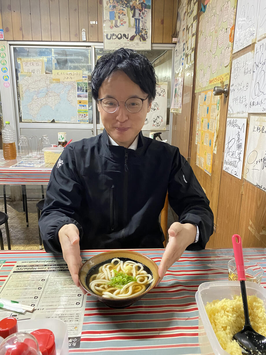 今回も同僚と一緒に、うどんを食べての出勤です。