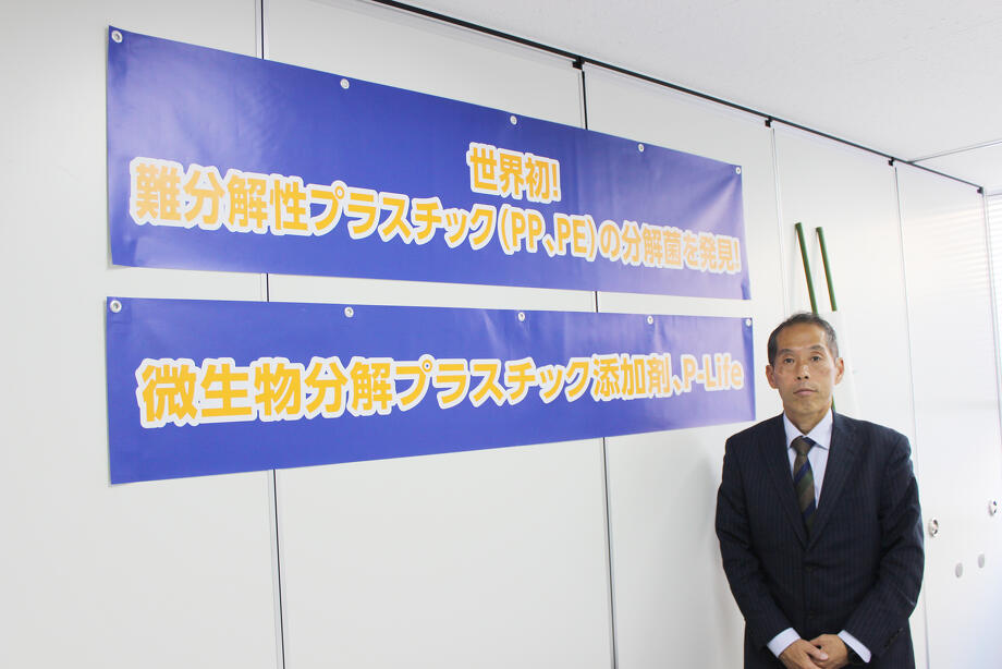冨山:1997年、米国のRobert Downie氏の技術ライセンスを受け、日本で分解性添加剤の販売を始めました。当時の製品は、ポリエチレンに澱粉を混ぜることで微生物を誘引し、崩壊を促すというものでした。しかし、実際にはポリエチレン自体の分解には至らなかった。そこからが本当の研究の始まりでした。