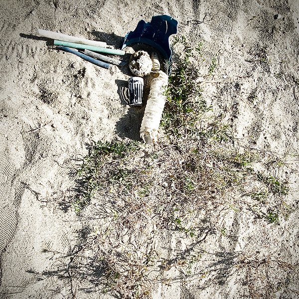 「ゴミ拾いの際、浜辺に打ち上げられ、クチバシと頭蓋骨のみ残して朽ち果てていた鳥が実際にいて、無常だなぁと思いつつも、土に還っていくその様に自然の営みを感じ、作品に残してみました」とは作者の談。なるほど、ゴミをうまく組み合わせて鳥に見立てています。彩度を落とし、強めのコントラストで仕上げた作風は死というシリアスなテーマにマッチし、見るものに緊張感を与えます。う〜ん、これはしょっぱなからハードルが爆上がりじゃないですかね?