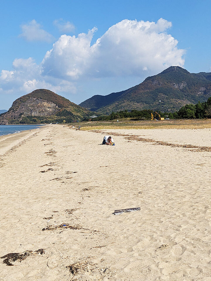 と鼻息を荒くしても実際やってみないとわからないということで、最寄りのゴミ拾いスポット、観音寺市の有明浜にて歴史的な一歩目、第一回を実施しました。(有明浜の名誉のためにも言っておくと、決してゴミだらけの浜というわけではありませんよ)